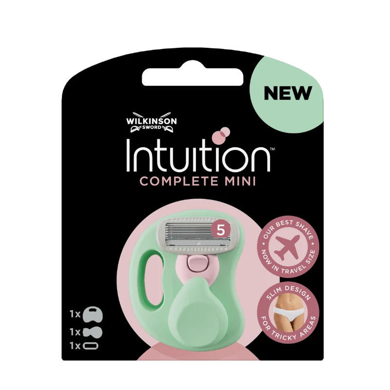 Wilkinson Sword Intuition Complete Mini je mini holicí strojek v cestovním pouzdře. Mini holicí strojek s 5 břity poskytuje hladké oholení a díky ergonomické rukojeti a cestovnímu pouzdru je ideální na cesty do příručního zavazadla. Cestovní pouzdro je navrženo pro rychlé sušení. Holicí strojek minimalizuje podráždění. Balení obsahuje 1 holící strojek - rukojeť holicího strojku + holící hlavici a 1 x cestovní pouzdro. Tento holicí strojek je kompatibilní s břity od Intuition Complete & Intuition Bikini Care Duo.